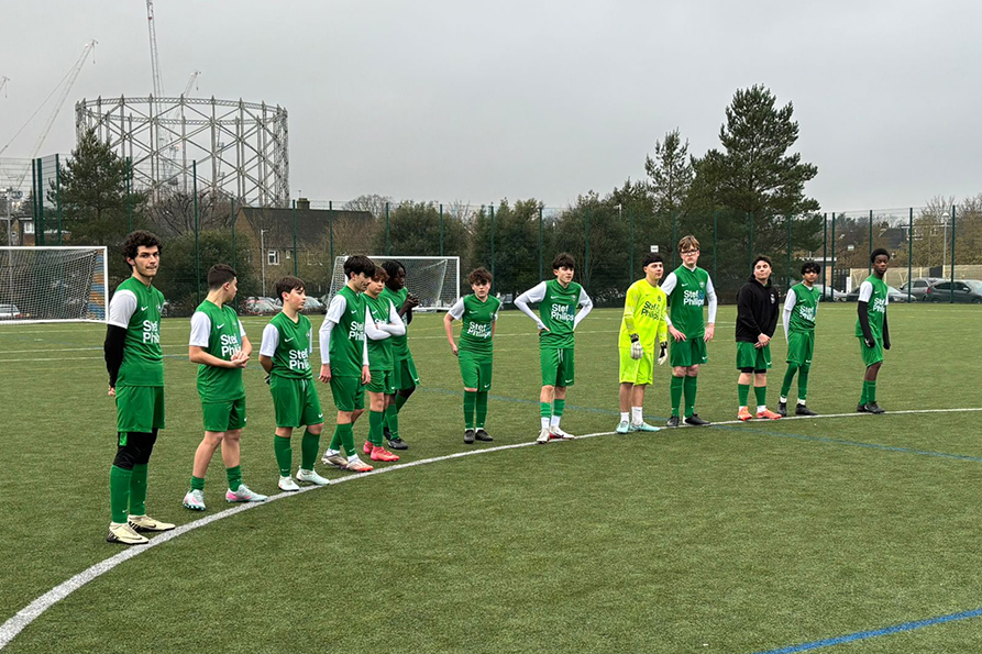 Following an impeccably observed minute’s silence for Amos Curtis, the boys began with real intensity. Despite the heavy pitch making their usual passing style difficult, confidence grew quickly after Tye dispatched a superb free kick into the top corner.